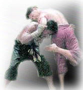 This trick is used when the opponent moves into the armpit, if he moves to the left armpit bend body to the left and press the opponent's head down then bend up the opponent's abdomen.