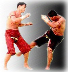 The boxer turns round and twists to throw the right swing-kick to the opponent's left calf to make him lose his balance or to hurt his instep. This trick is used for attack, defense and counter move or escape.