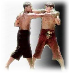 The boxer uses the right elbow which is bent straight and turns the forehand into the right shoulder then steps the right foot towards. Throws the right elbow up to the chin. This trick is used for escape.