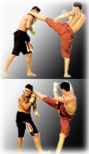 This trick is used when putting the opponent off his balance by kicking and sleeping back wards. Throw the left and the right kick to the opponent's jaws again until the opponent falls down. If the boxer practices to get skillful in order to become an experienced kicker while doing this trick the tip of foot should be touching the ground.