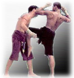 The boxer throws the left elbow while holding the lower part of the arm near the left ear to the opponent's rib. Use this trick for attack or defense.